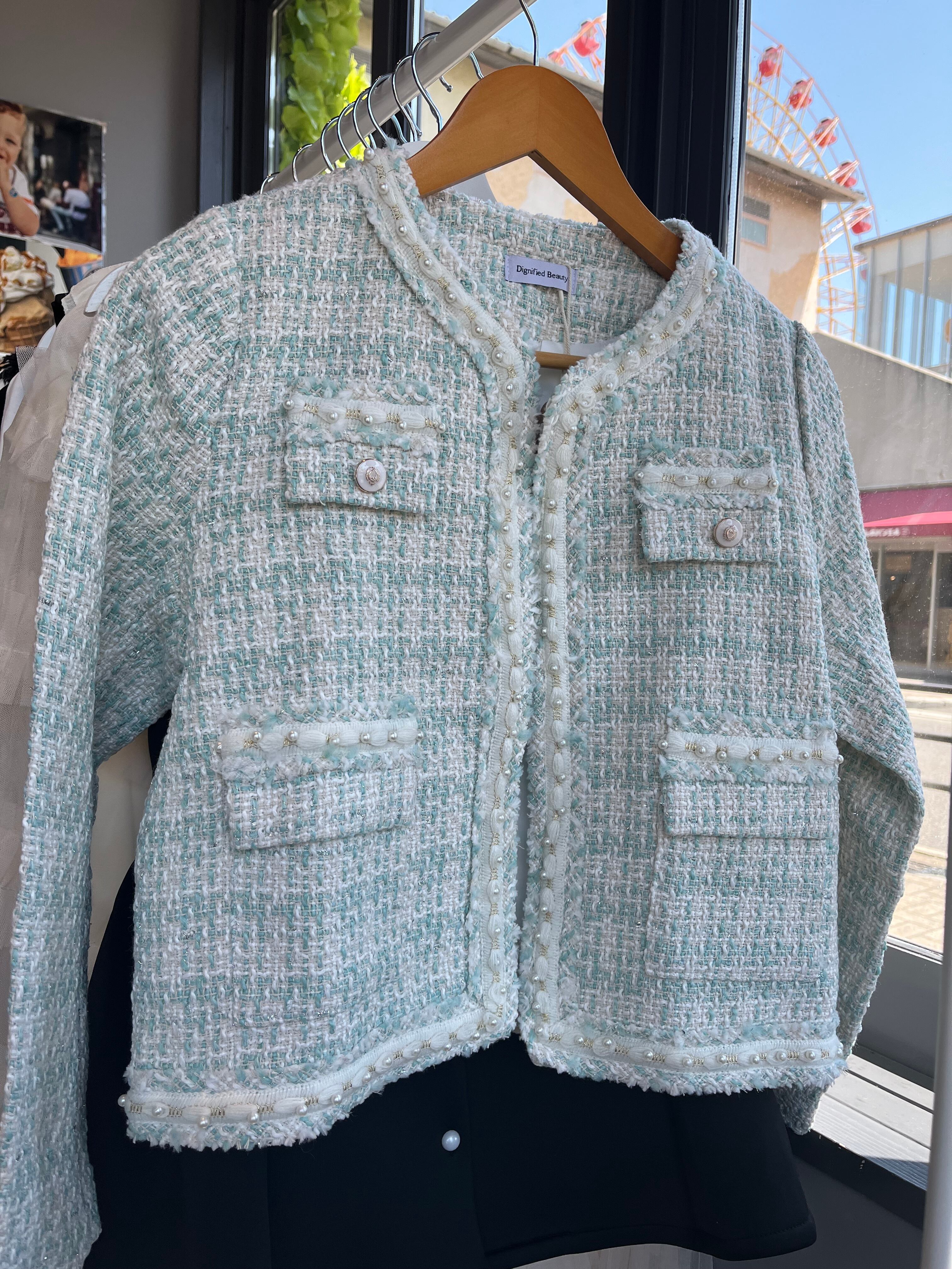 大人上品なミントグリーンが魅力のジャケットで、特別なスタイルを楽しむ
