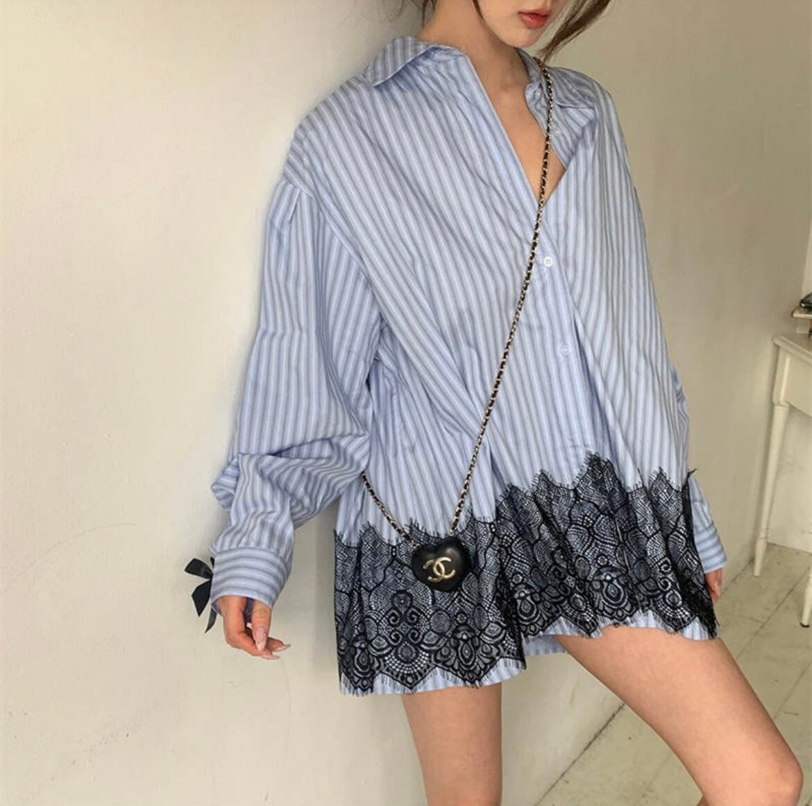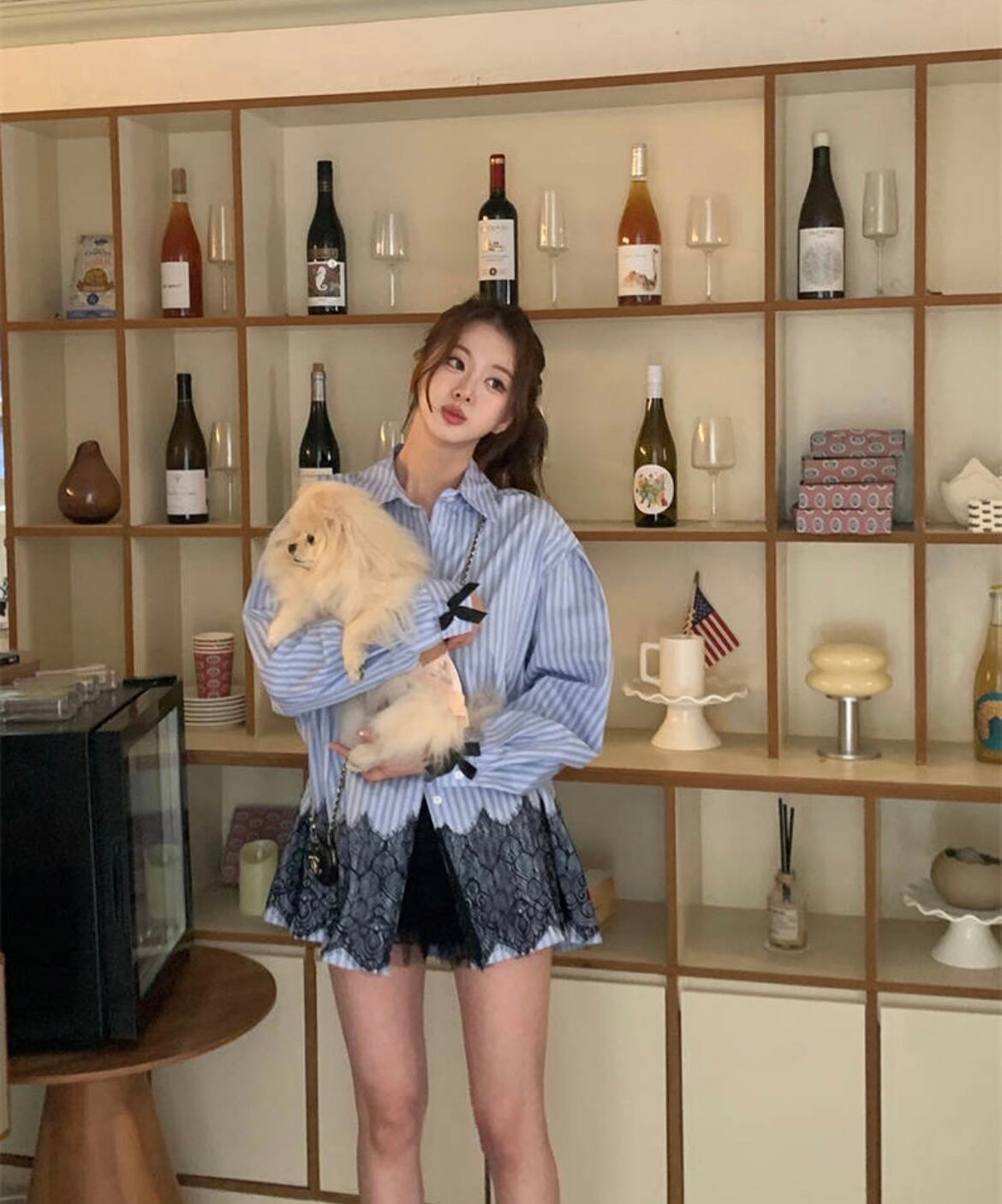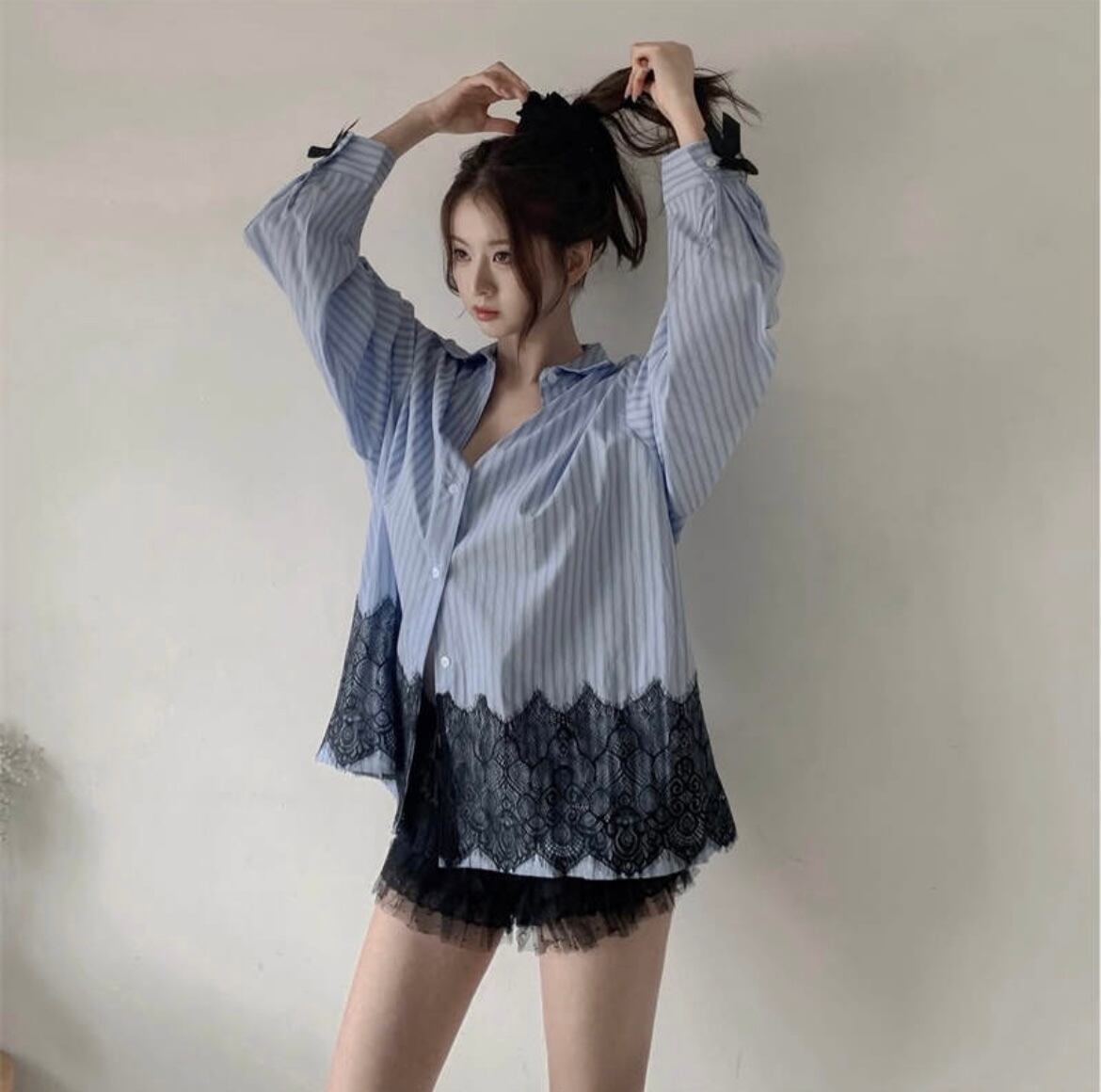 この日よけブラウスは、裾に施されたブラックレースが印象的で、可愛らしさとエレガンスを兼ね備えたデザインが魅力です。ストライプ柄が爽やかな印象を与え、春夏のシーズンにぴったりのアイテムです。軽やかな素材感は心地よい着心地を提供し、カジュアルからちょっとしたお出かけまで幅広いシーンで活躍します。また、ボトムスとのコーディネートも簡単で、あなたの個性を引き立てるスタイルを実現します。