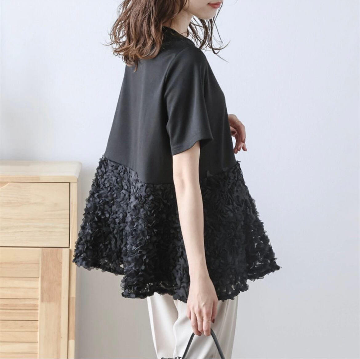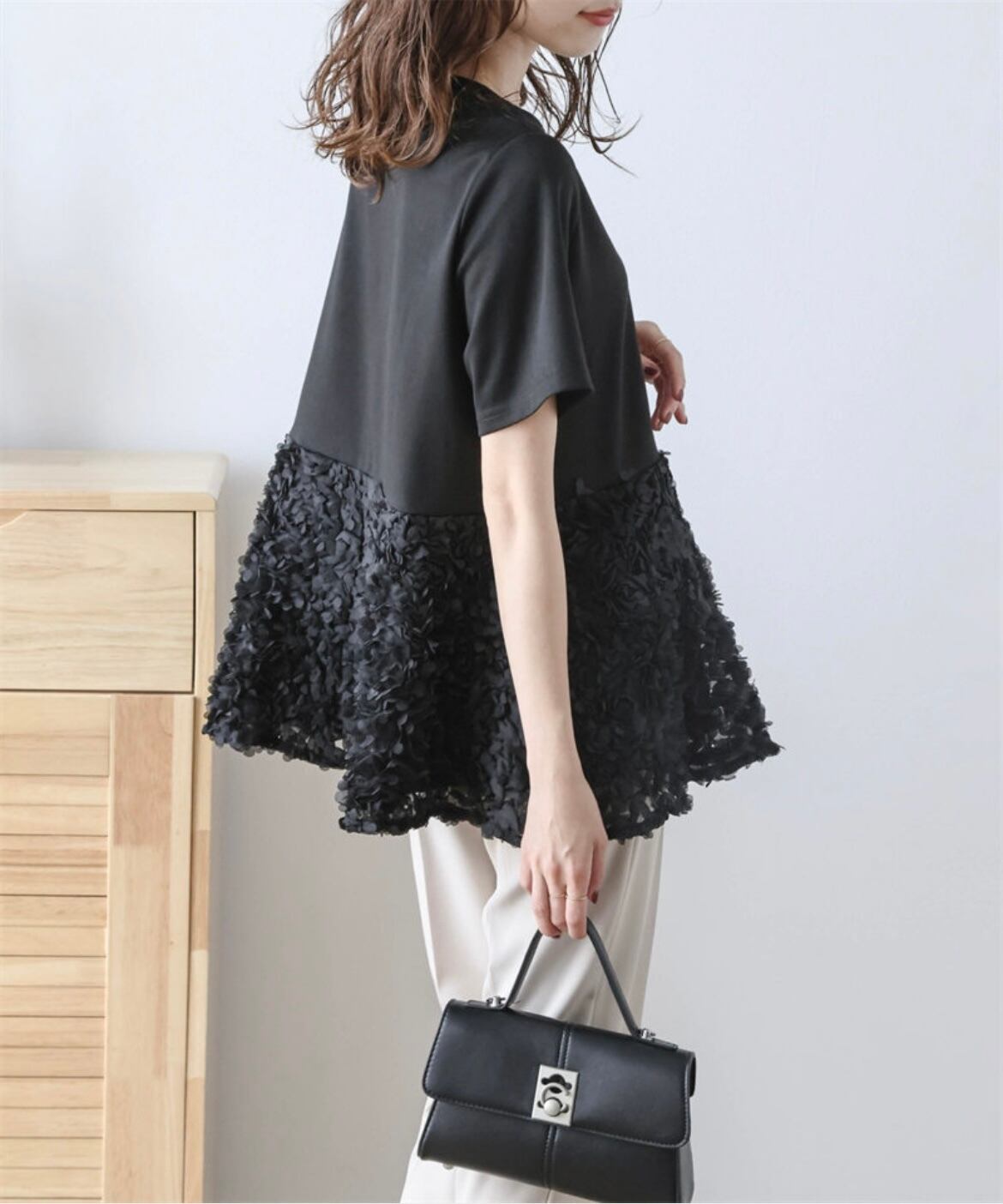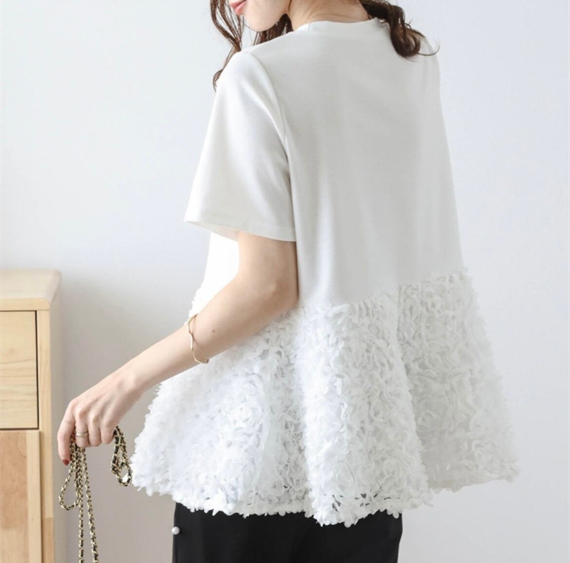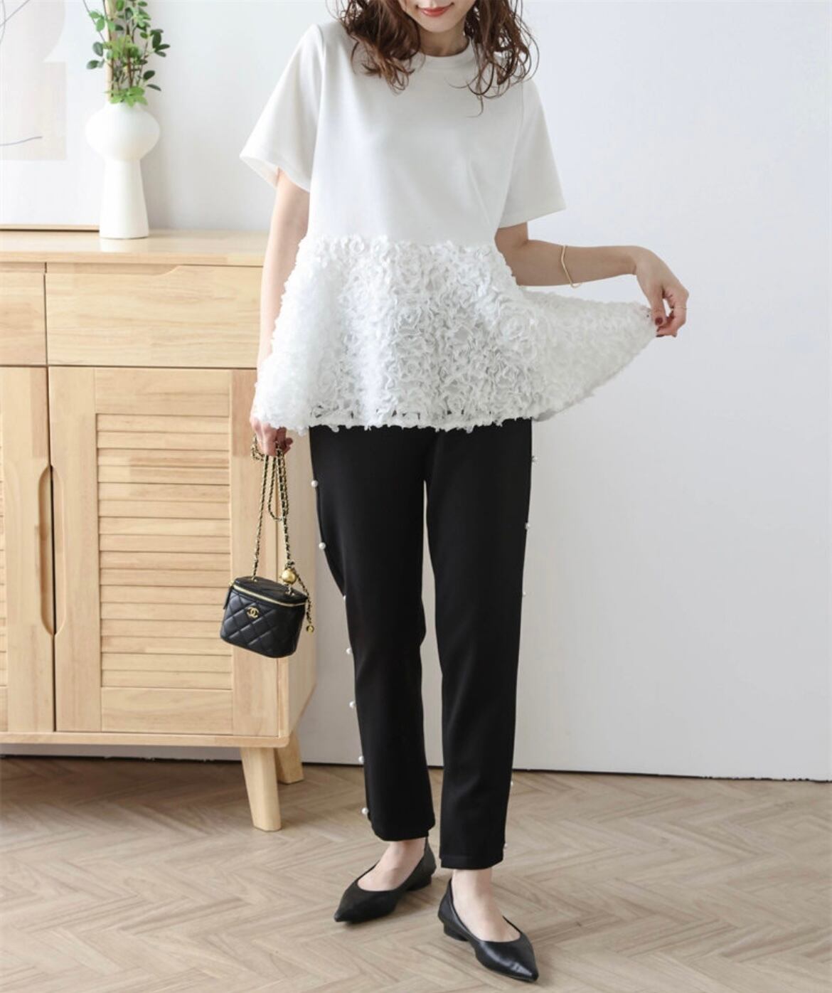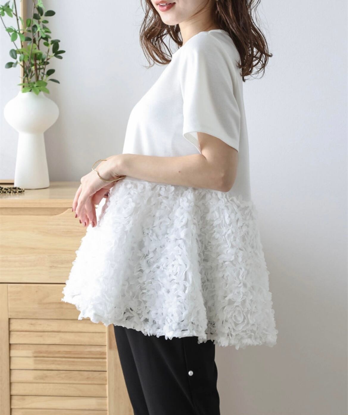 大人上品なふんわり広がるトップスで、特別なスタイルを楽しむ