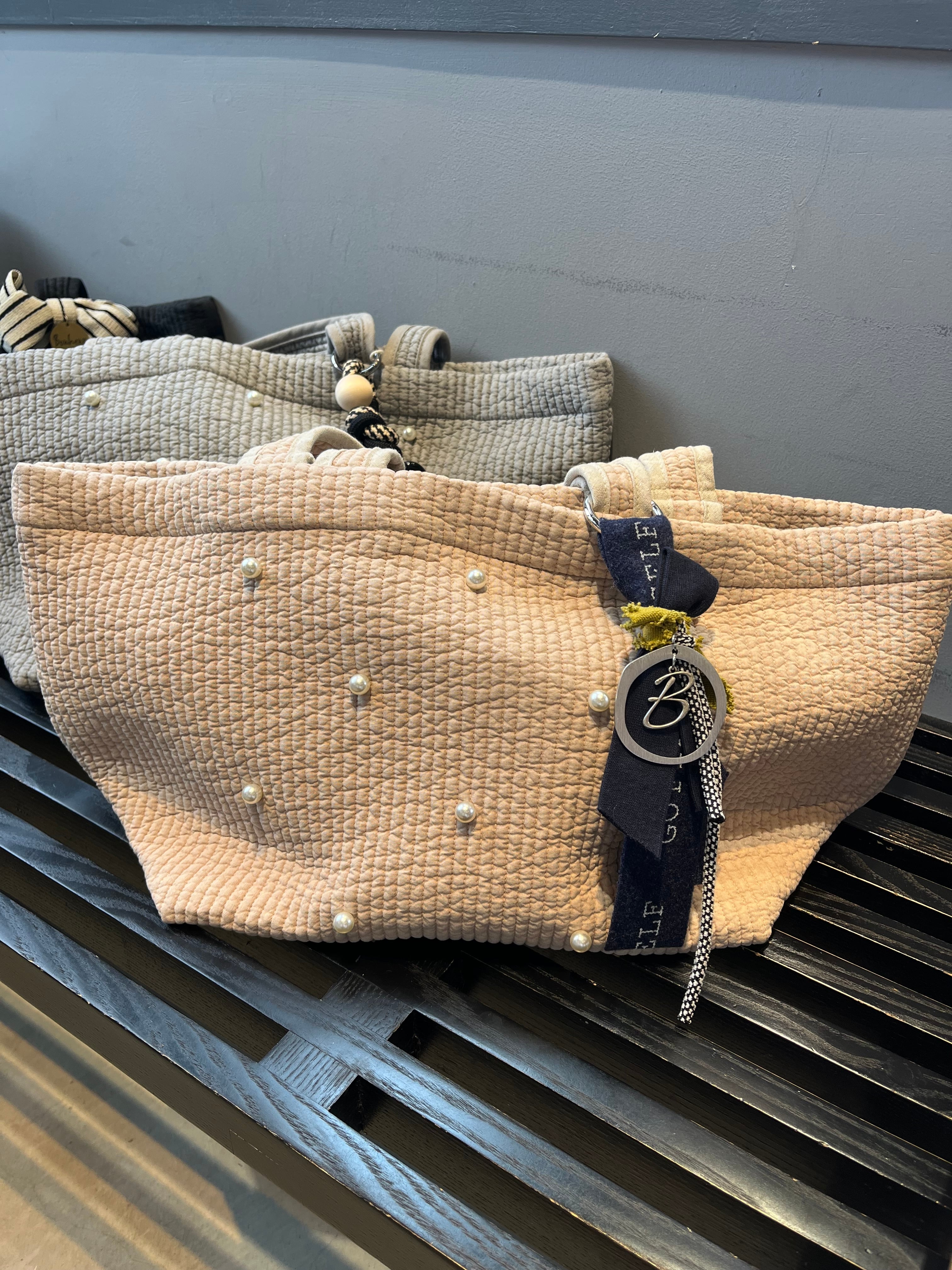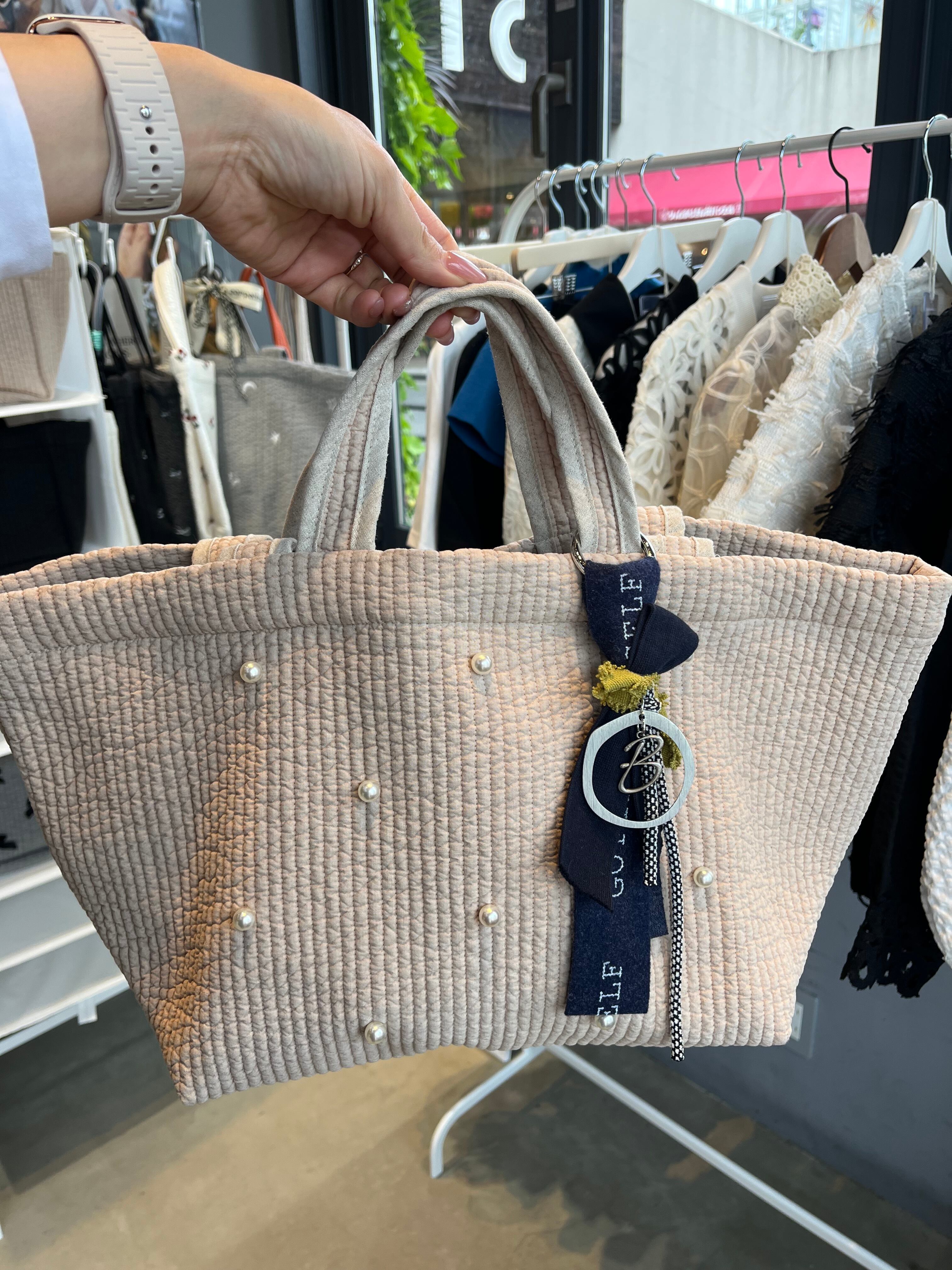 特別なシーンにもカジュアルなお出かけにもぴったりなヌビバッグ パール大 ベージュで、スタイリッシュなコーディネートを楽しむ!
