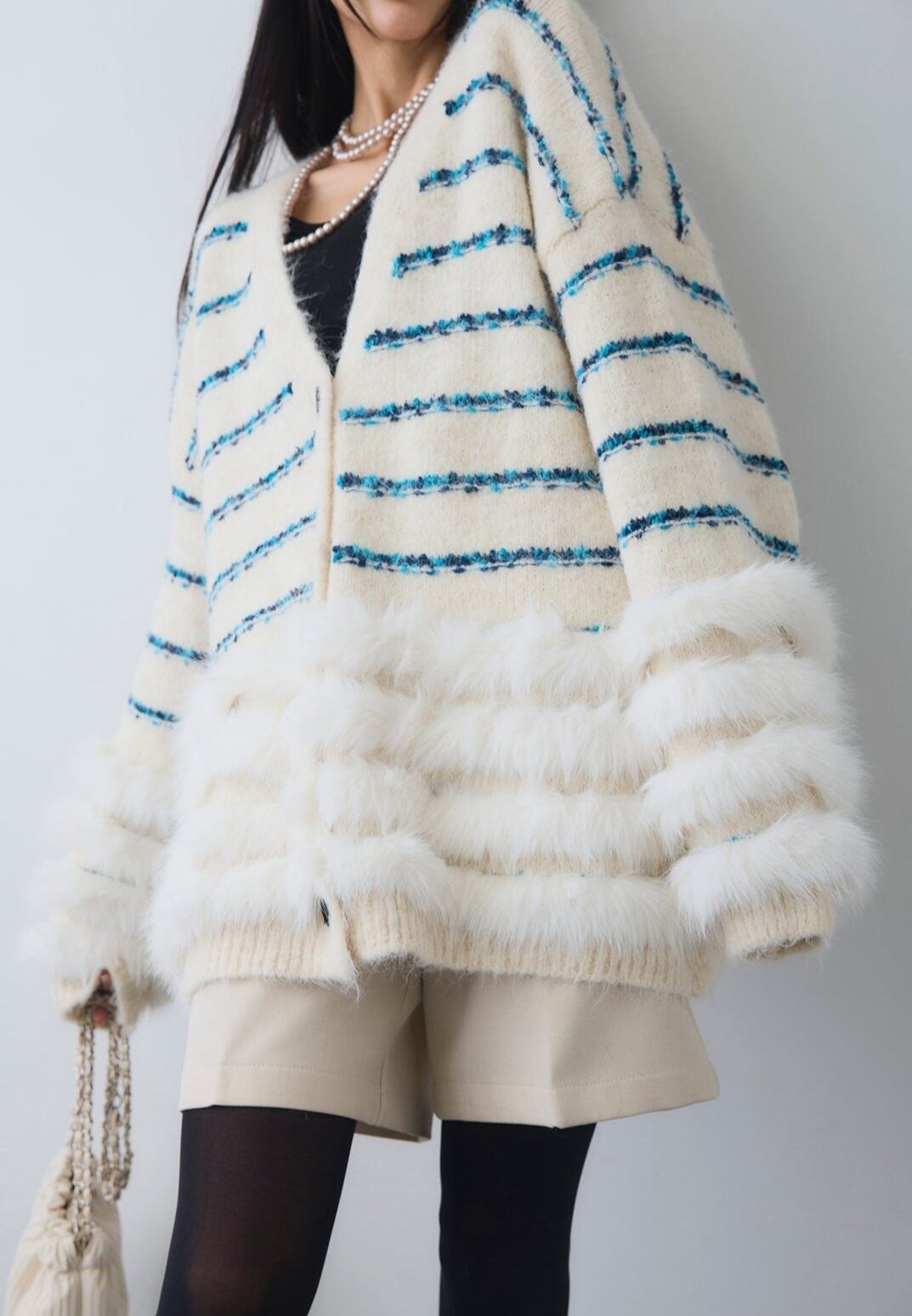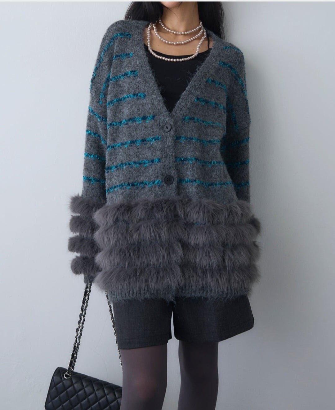 このファーニットカーディガンは、大人の女性らしい上品さが際立つデザインが特徴です。柔らかいファー素材が、シンプルな中にも優雅さを演出し、着るだけで周囲の視線を引きつけることでしょう。どんなスタイルにも合わせやすく、コーディネートの幅を広げます。ぜひこの一着をあなたのクローゼットに加えてみてください。